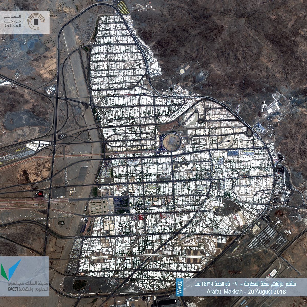 فيصل الكبكبي On Twitter صورة ملتقطة من القمر الصناعي اليوم الأثنين في يوم عرفة والصورة الأخرى ملتقطة في يوم عادي حجاج بيت الله الحرام حج 1439 Https T Co Xvon2mv9n7