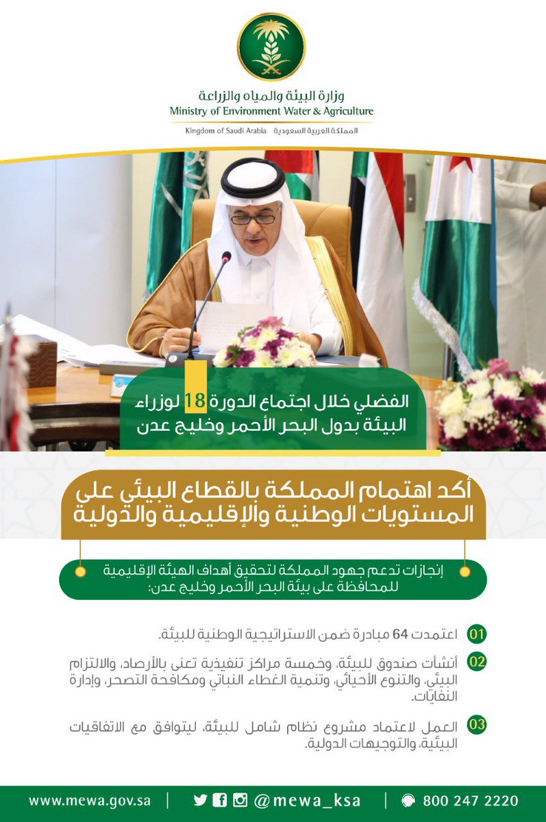وزارة البيئة والمياه والزراعة V Twitter ع قدت في جدة اليوم الدورة الـ18 لإجتماعات الهيئة الإقليمية للمحافظة على بيئة البحر الأحمر و خليج عدن برئاسة وزير البيئة والمياه والزراعة م عبدالرحمن الفضلي والذي أك د اهتمام