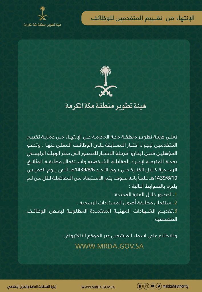 توظيف السعودية وظائف بمختلف التخصصات شاغرة بهيئة تطوير منطقة مكة المكرمة للتفاصيل Https Www Saudiemp Com Show News Php Id 662 Facebook