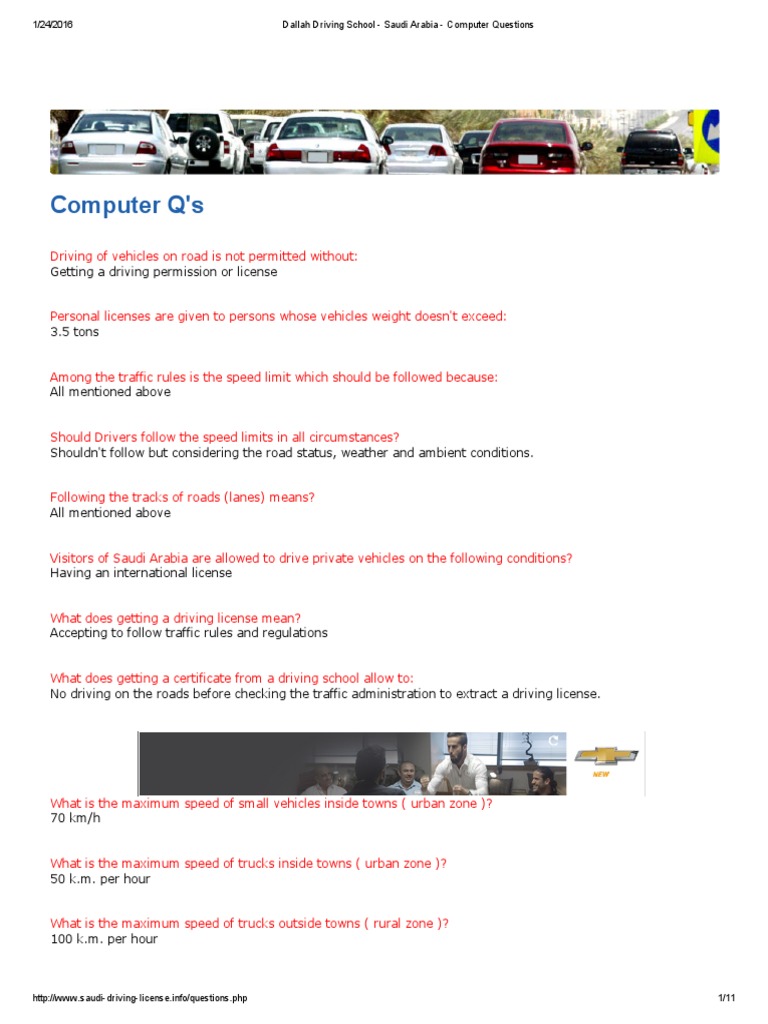 Dallah Driving School Saudi Arabia Computer Questions Traffic Traffic Collision